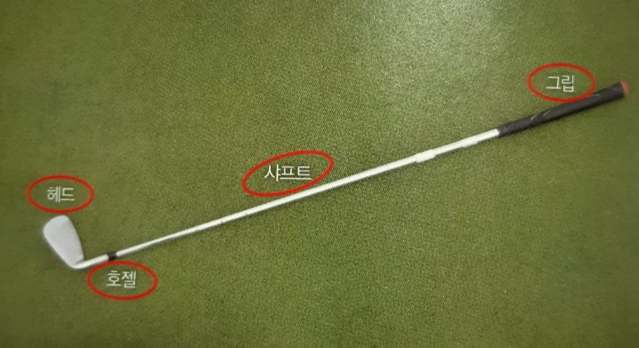 클럽헤드,호젤,샤프트,크립 등 큰 부위로 이루어져 있다.