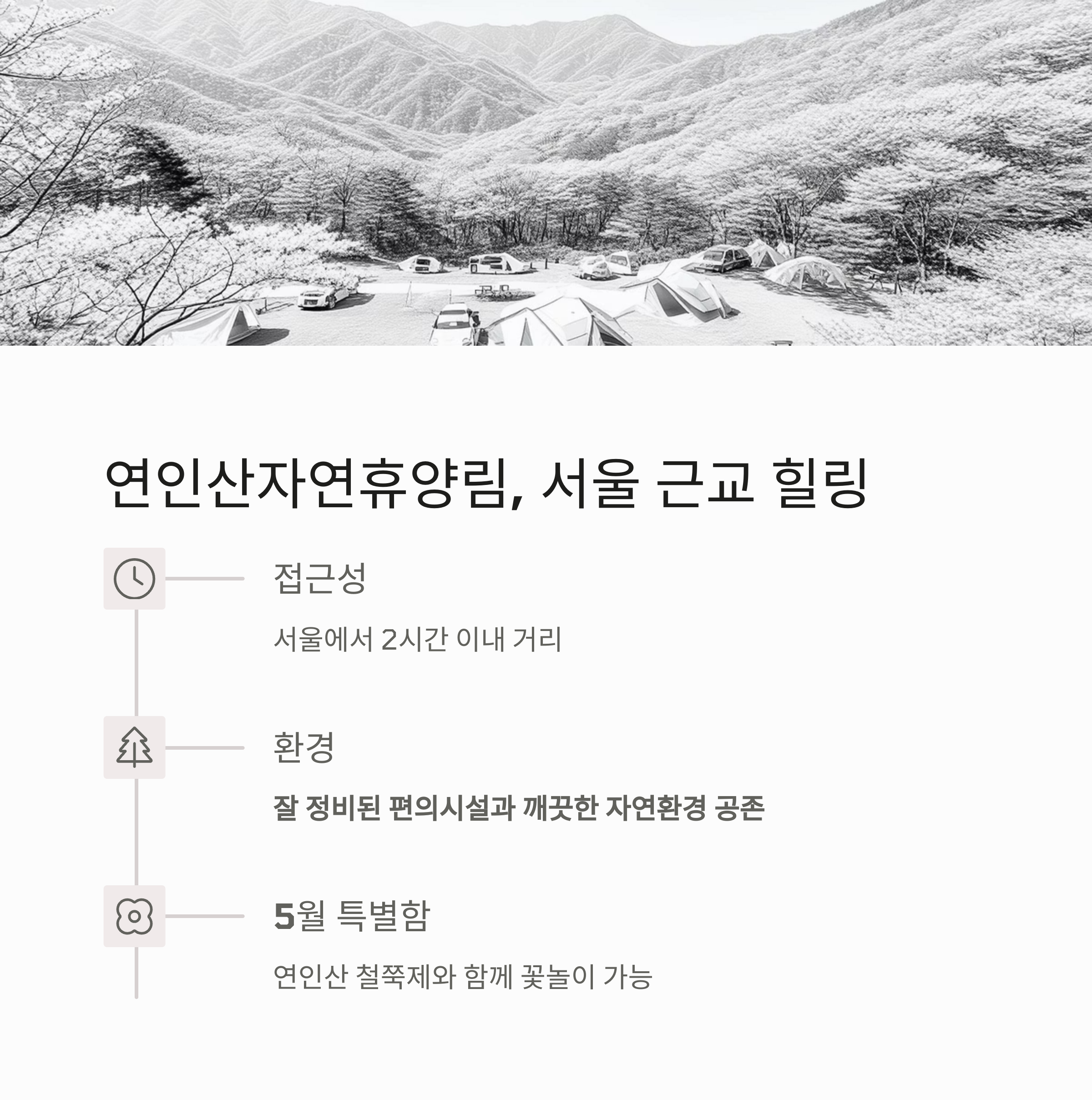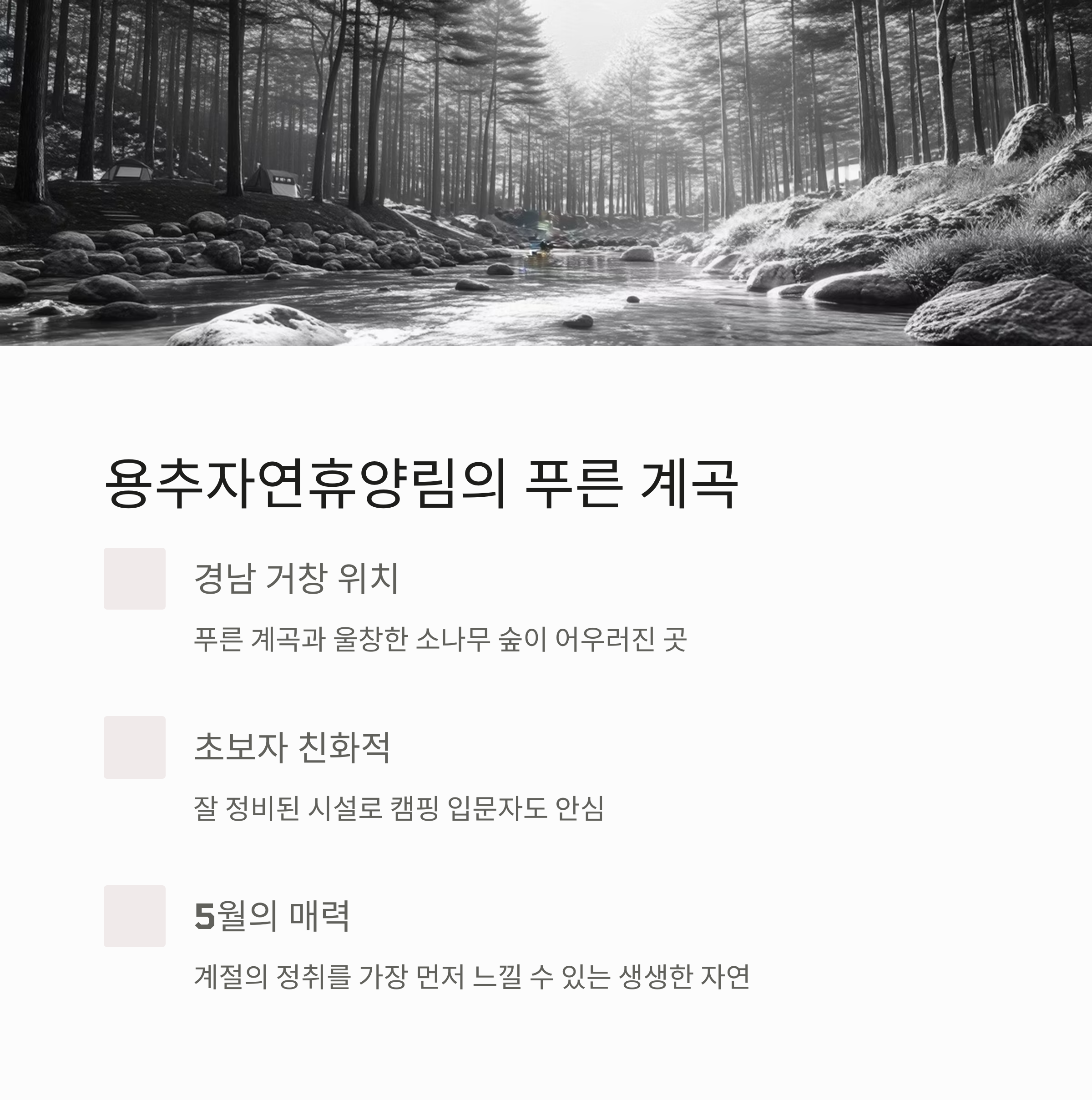 "계절의 정취를 가장 먼저 느낄 수 있는 캠핑지"라는 말이 어울릴 정도로 5월의 자연이 생생하게 살아 있습니다.
